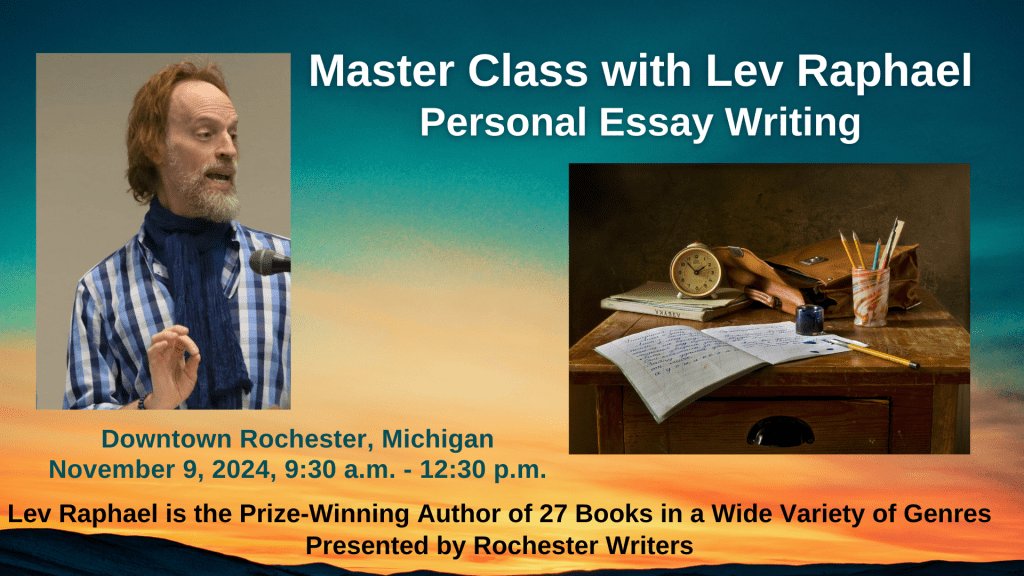 One Master Class Registration ($100) includes a three-hour workshop with Lev Raphael, morning refreshments, and free parking.